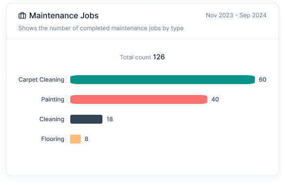 Maintenance Jobs Chart: A bar chart displaying the number of completed maintenance jobs by type.