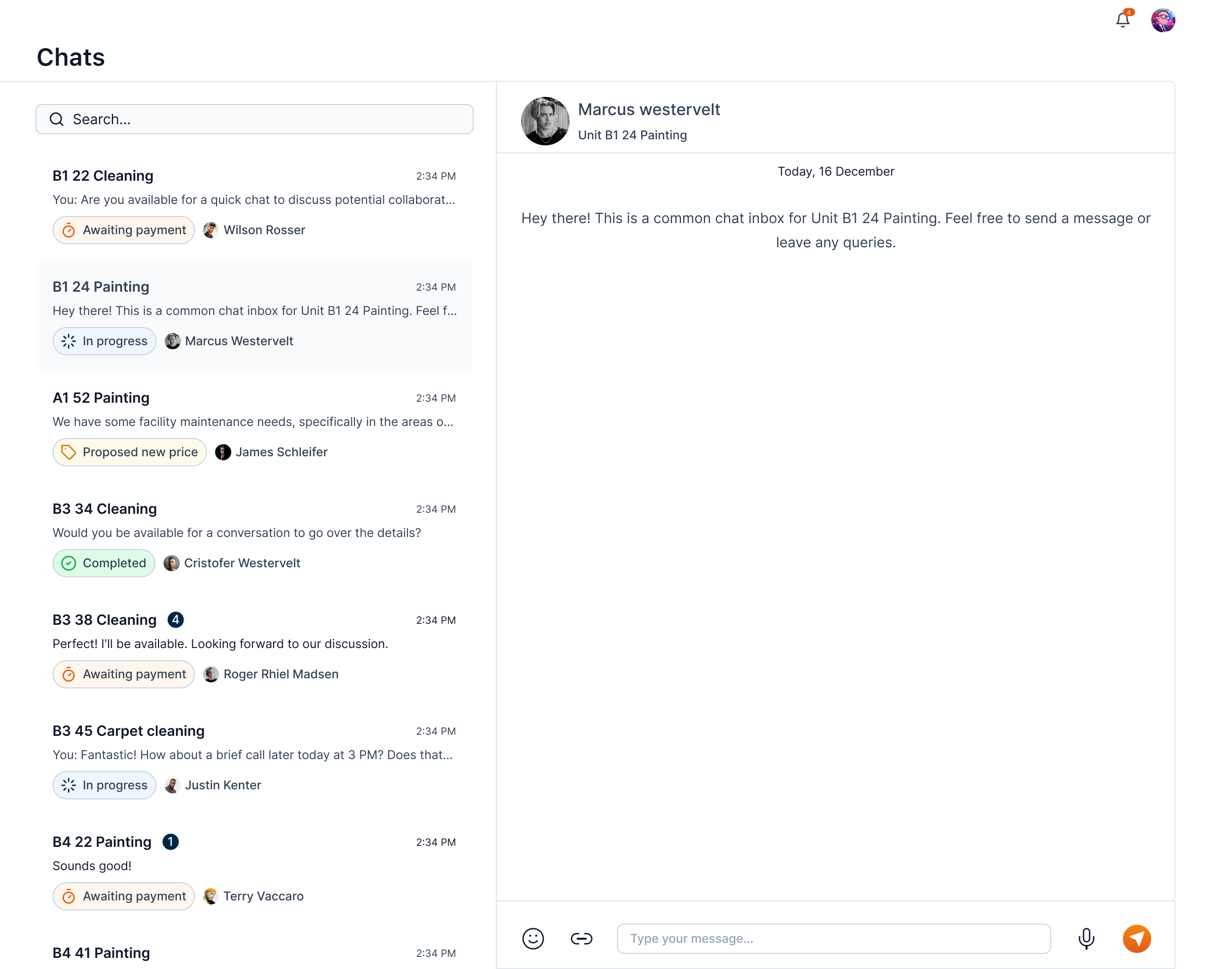Chat Listing: This section shows all the chats with vendors on the basis of jobs. You can search for a particular chat using the search feature.