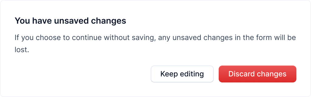 If you've made changes to the template and haven't saved them, you'll be prompted to save the changes before navigating away from the page.