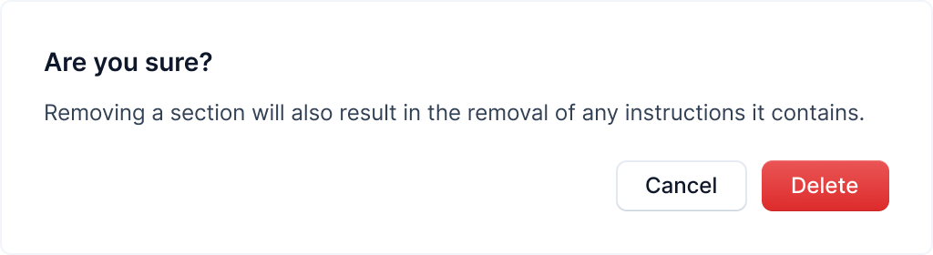 This action is irreversible. Once you delete a section, it will remove all the instructions in the section.