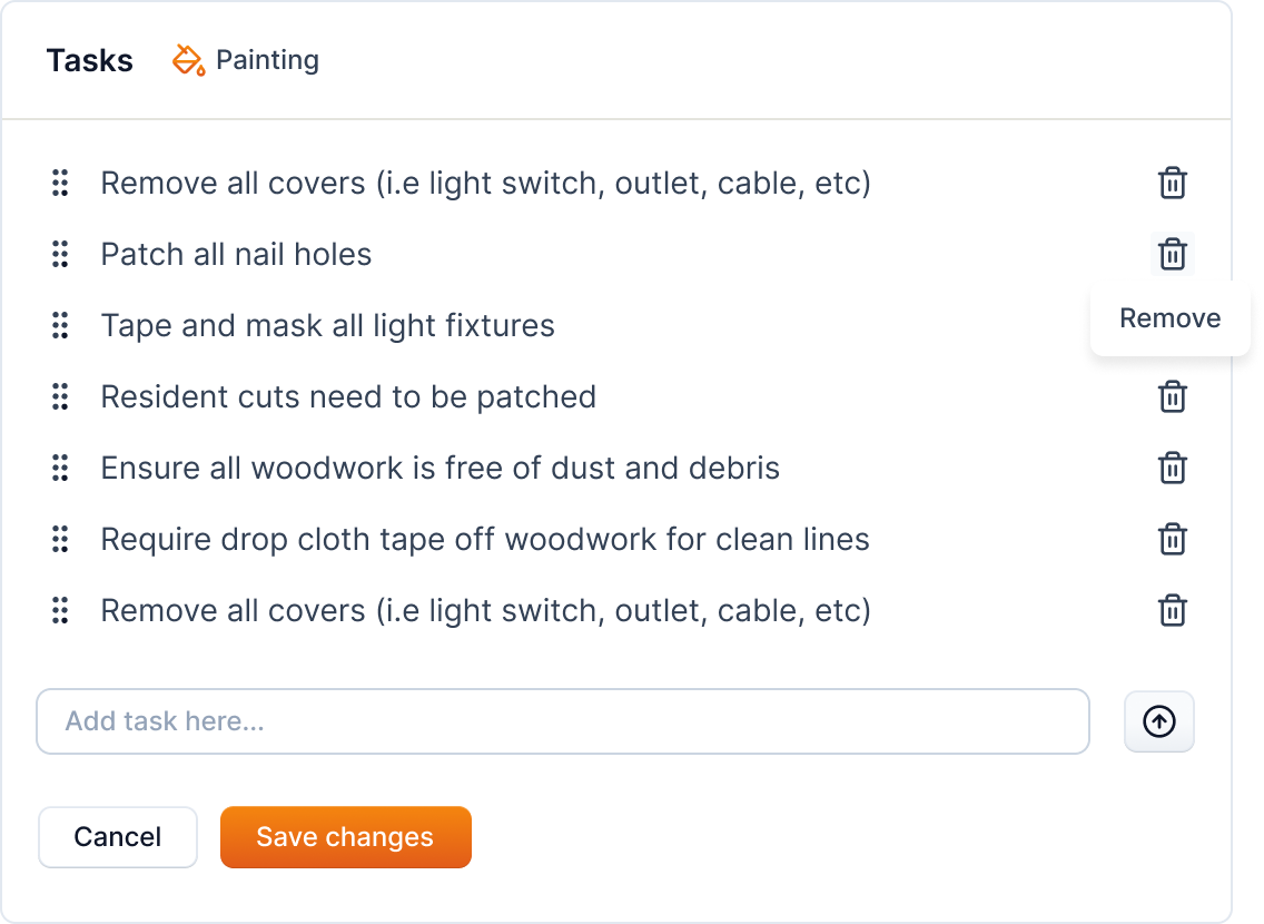 The added job instruction can be removed by clicking on the trash icon next to the task.