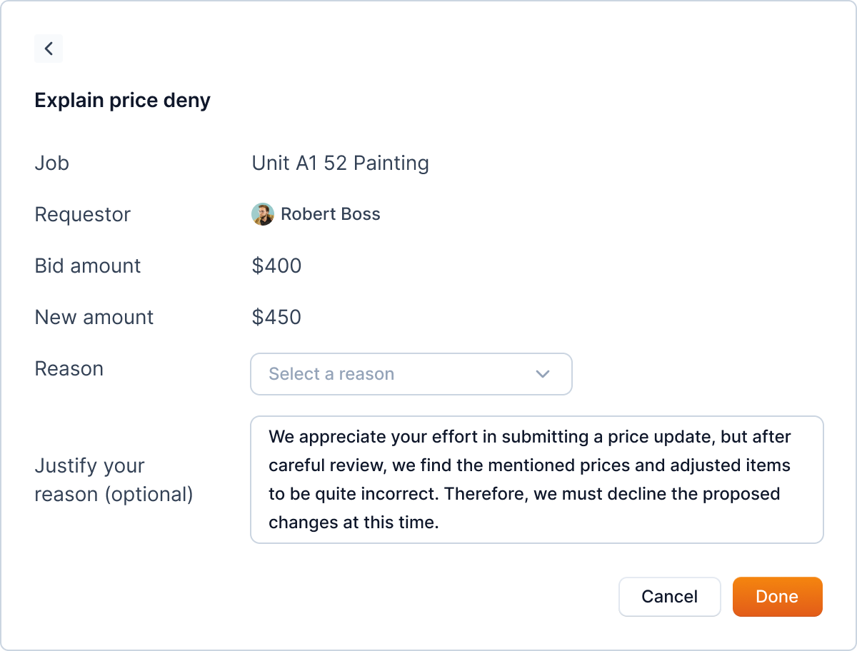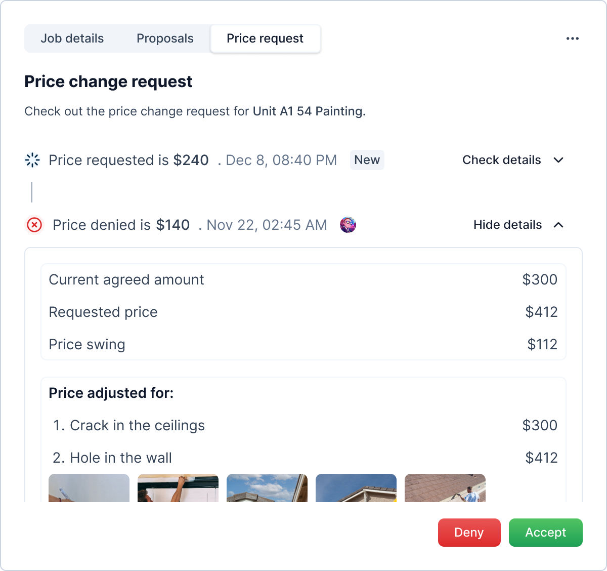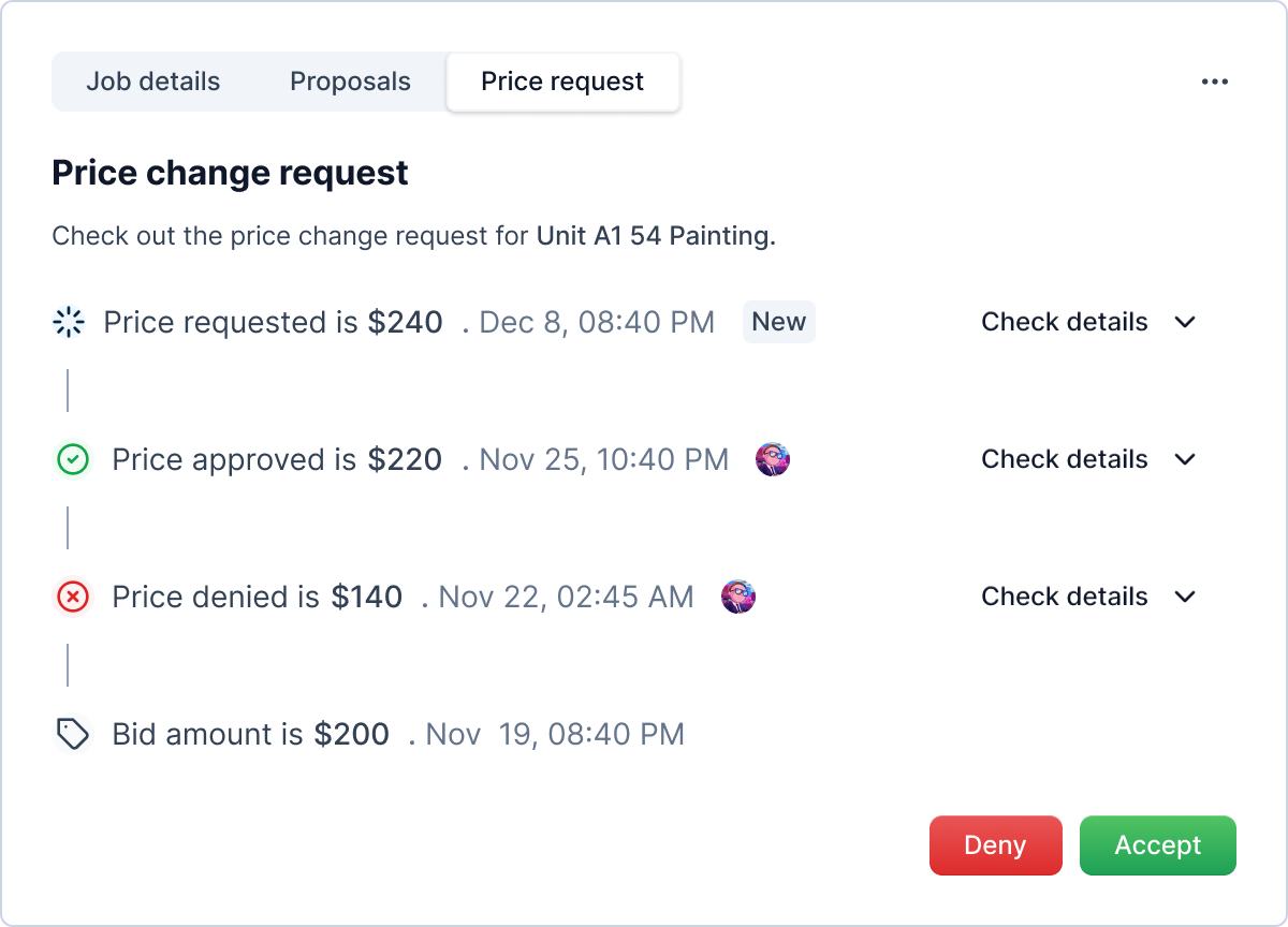 Proposed New Price: If a job has received a new price proposal, it will appear here, indicating that there is a price change proposal awaiting your review.