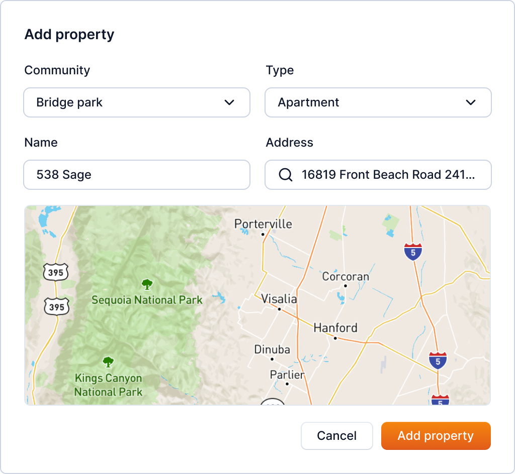 After filling the necessary information, click the "Add property" button. This will add the property to the community.