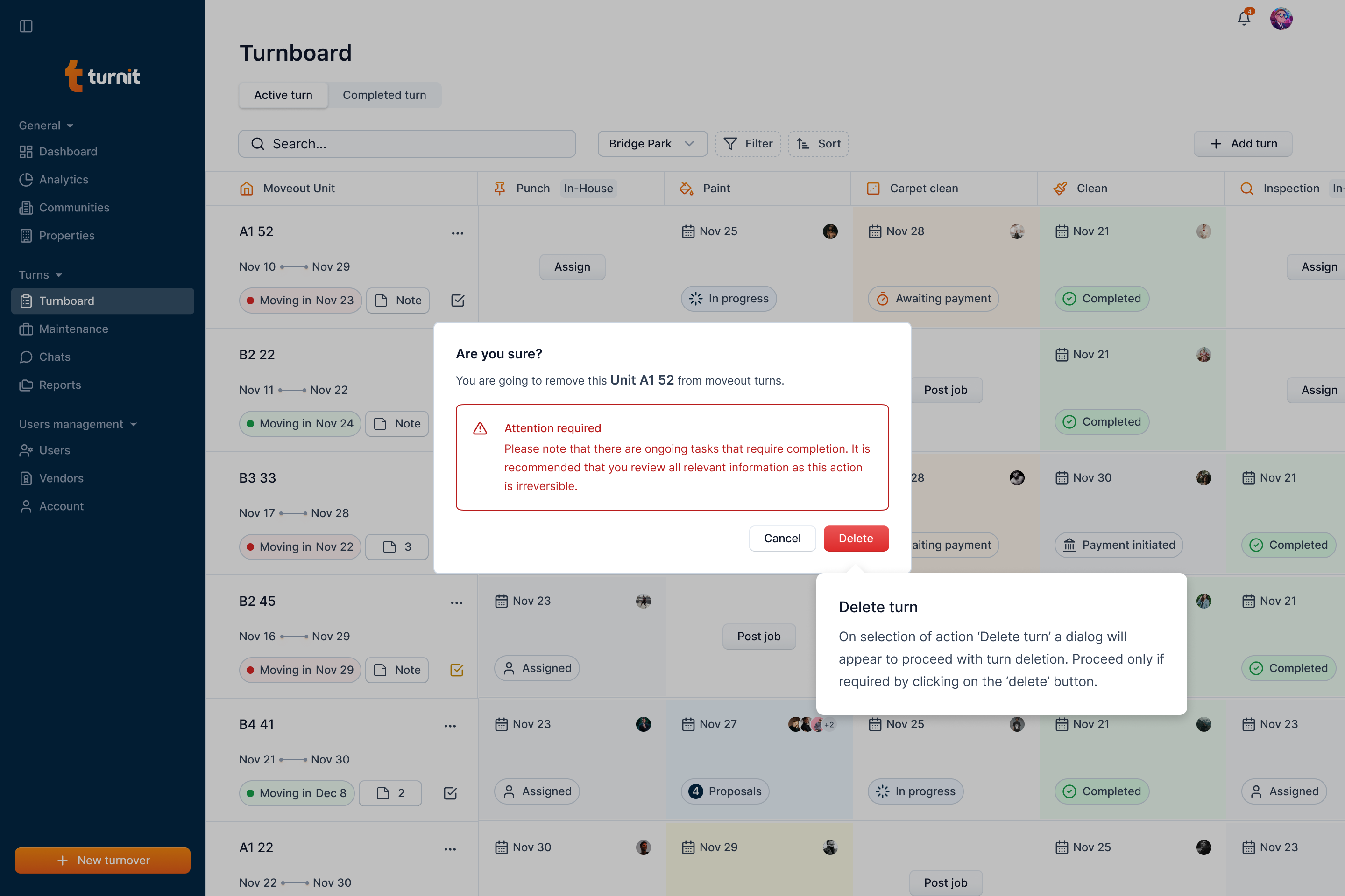 - Expected Turnover Duration – Pick a date range that indicates the expected time needed to complete the turnover.