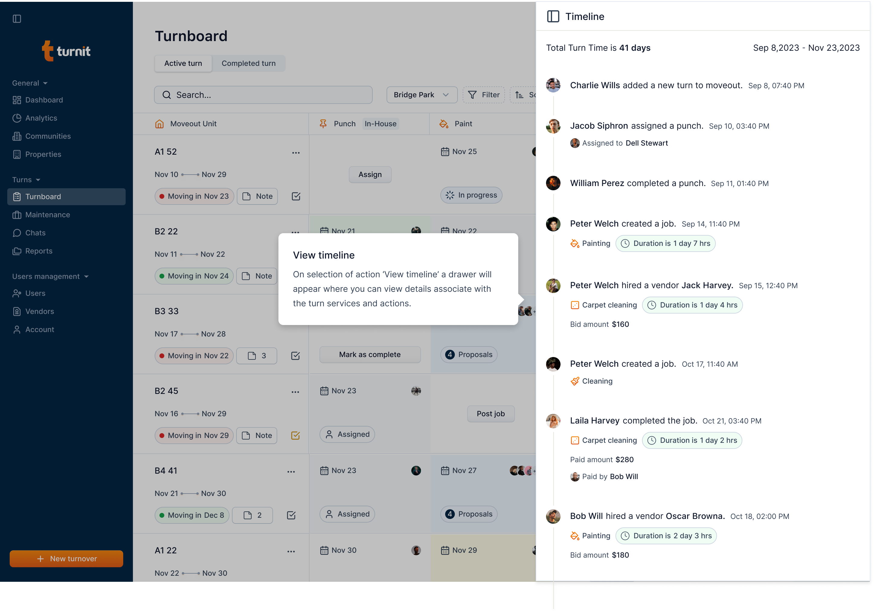Turnover Timeline