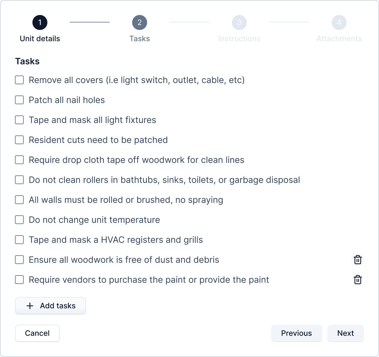 In this step, you add tasks for the job. This is a simple to-do list. For example, for cleaning, it might look as: