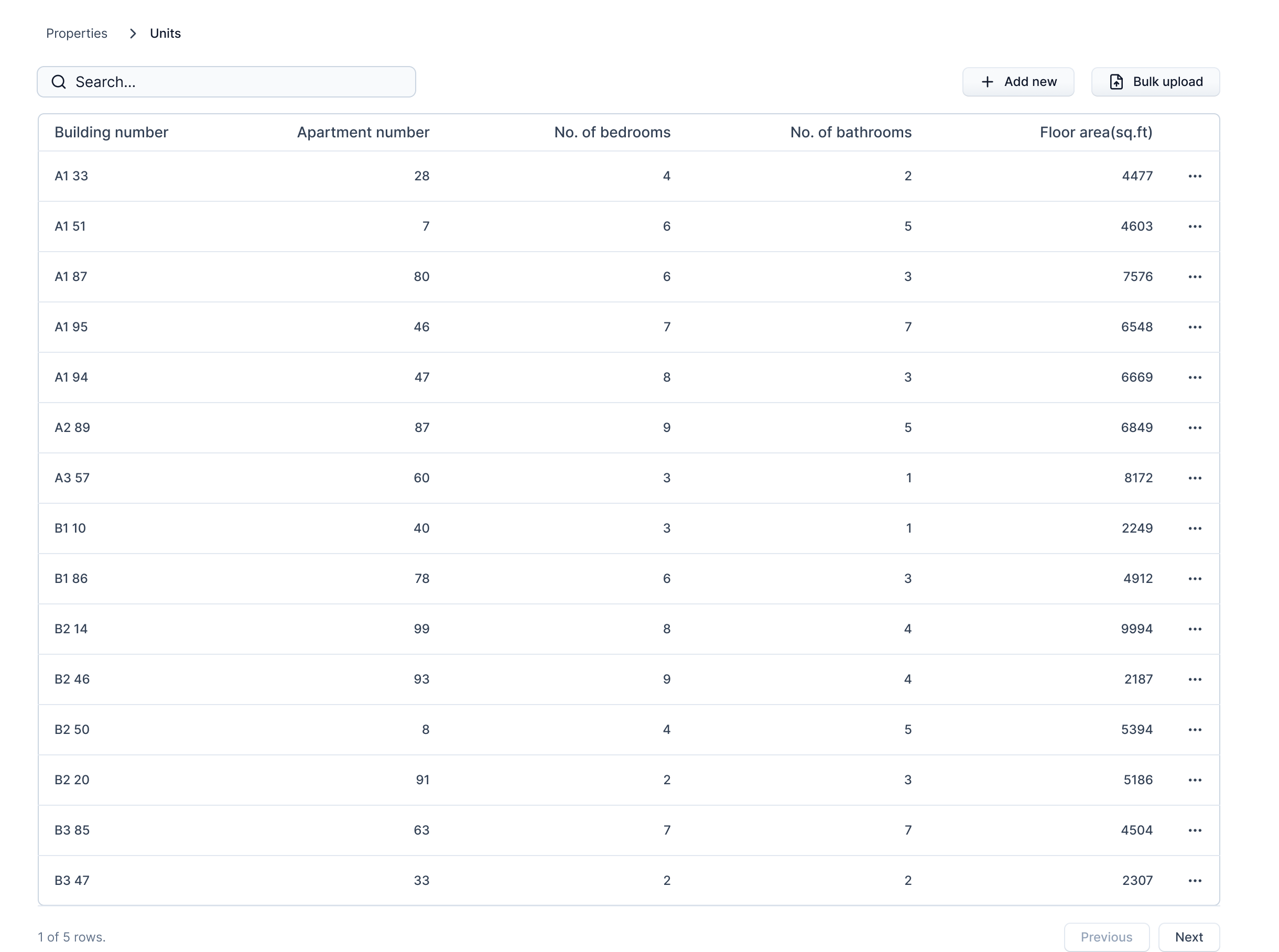 A unit is represented by a row on the table. The three dots icon on the right allows you to edit or delete the unit.