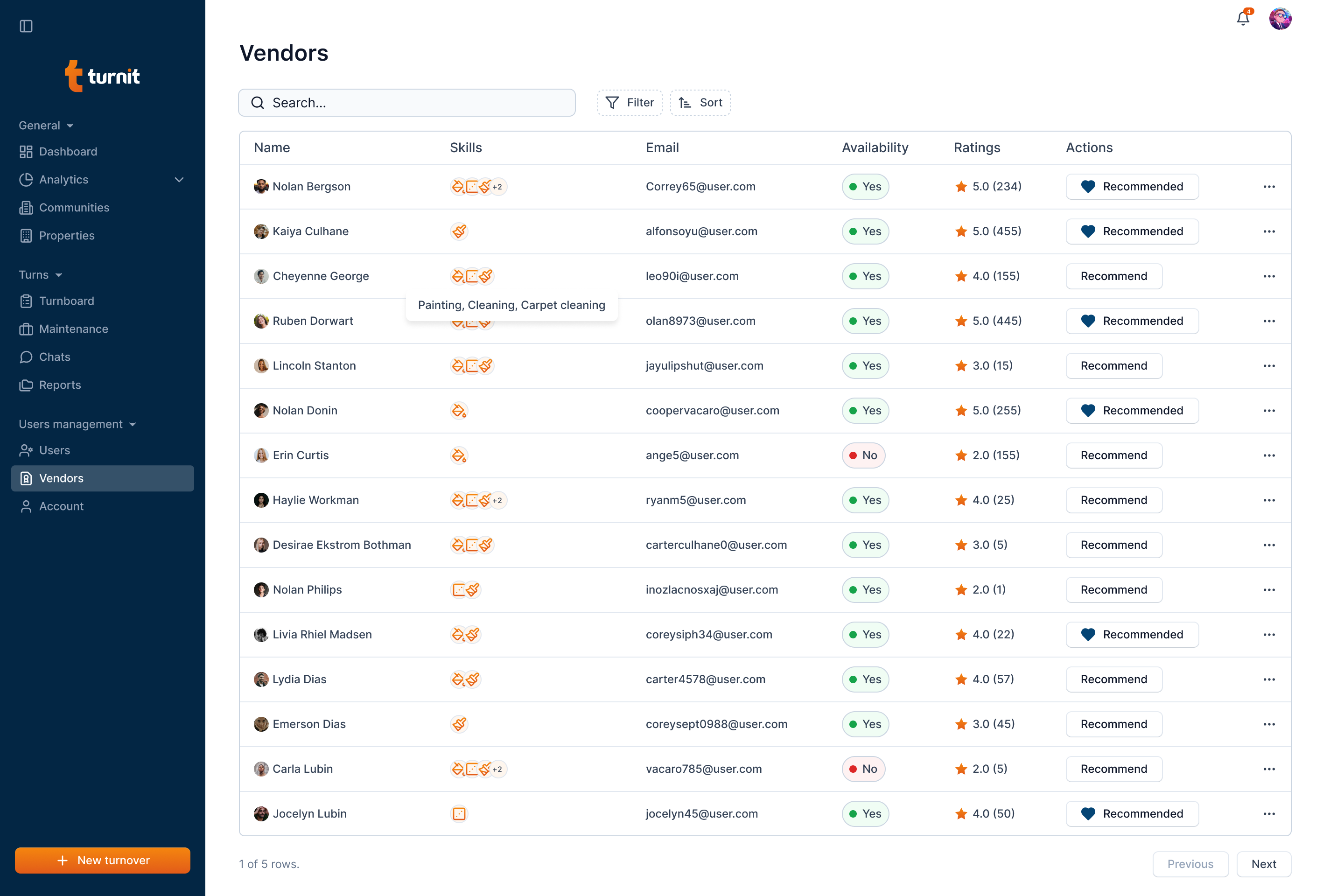 Furthermore, you can also search the vendors by their name, filter and sort the table by various fields. Similarly, it also offers you to make them your preferred using "Recommend" feature.