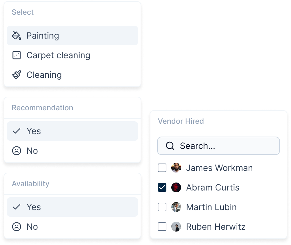 Search, Filter and Sort Vendors You can search vendors using their first name and last name. Furthermore, you can also filter the list and sort the list.